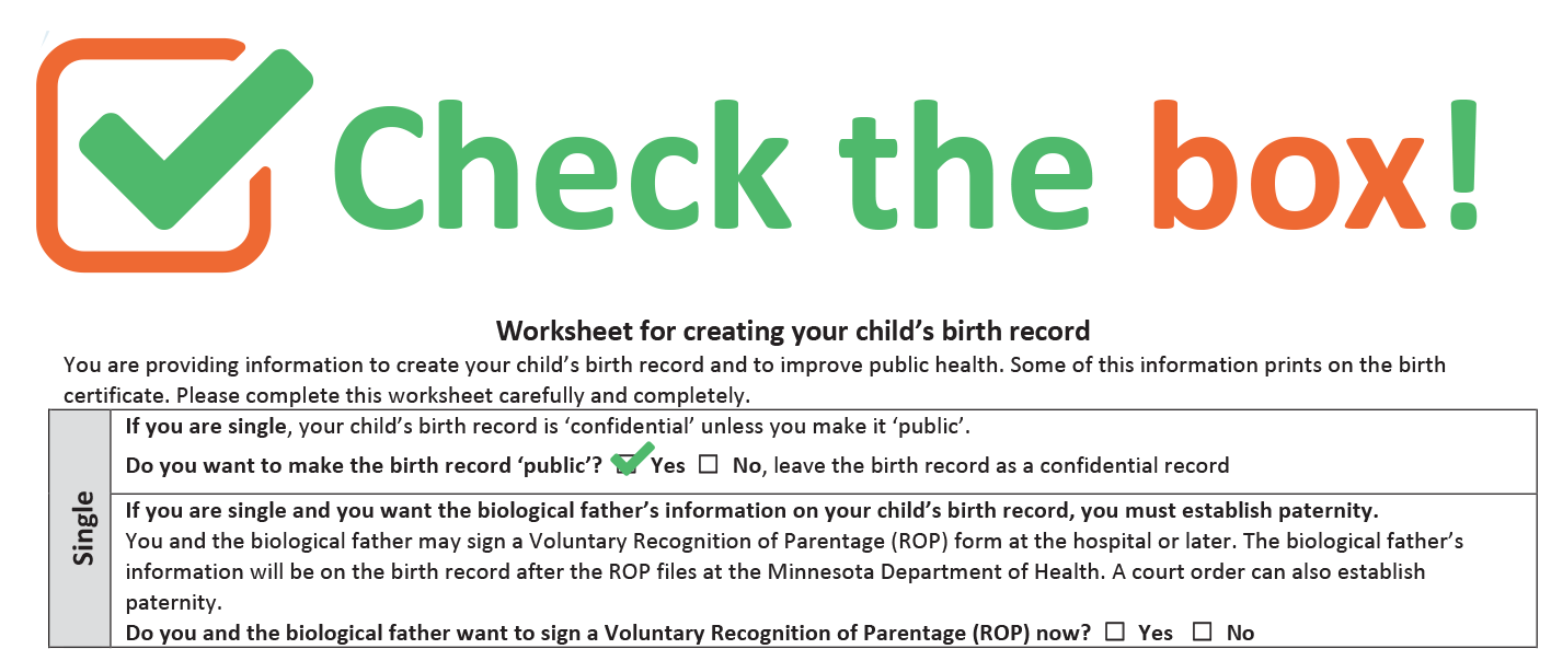 When filling out your baby’s birth record during their time of birth, check “Yes” to the question: “Do you want to make your birth record public?”