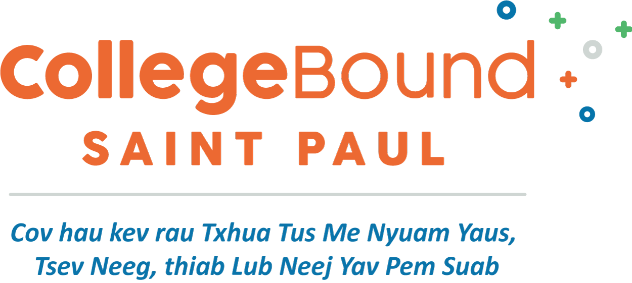 CollegeBound Saint Paul yog teev tsim los ntawm thiab rau ib tsoom zej zos los pab cov tsev neeg xa lawv cov menyuam mus taug cov hauv kev kawm tom qab kawm ntawv high school tiav. Kev pib tseg nyiaj thiab npaj rau lawv cov menyuam txoj kev kawm ntawv yuav hloov tau lawv lub neej ntau heev txog lub caij uas lawv npaj txhij yuav mus kawm ntawv qib siab.