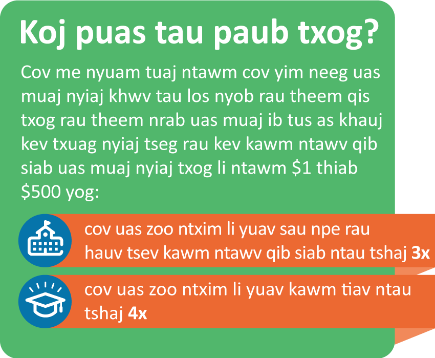 Txoj kev pib tseg nyiaj thiab npaj rau lawv cov menyuam cov hauv kev kawm ntawv yog ib qho nyuaj heev rau cov tsev neeg, yog vim li ntawd tsoom zej zos thiaj li sib koom ua ke los mus teev tsim CollegeBound Saint Paul los pab cov tsev neeg tseg nyiaj thiab npaj rau lawv cov menyuam. Kev pib tseg nyiaj thiab npaj rau lawv cov menyuam txoj kev kawm ntawv yuav hloov tau lawv lub neej ntau heev txog lub caij uas lawv npaj txhij yuav mus kawm ntawv qib siab.